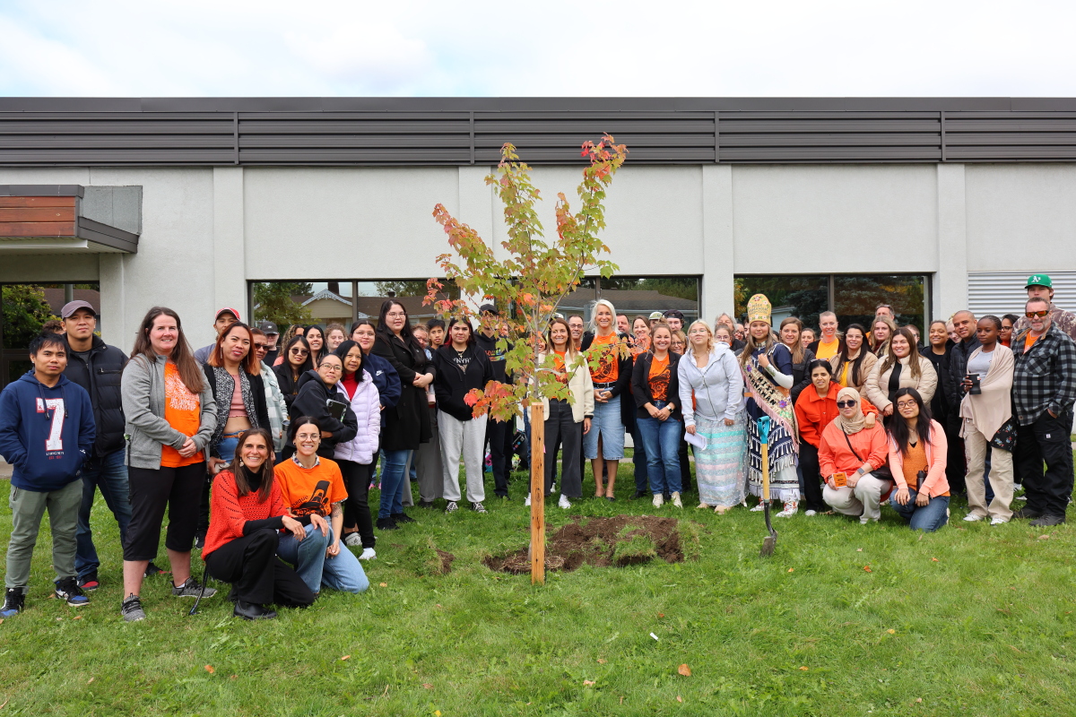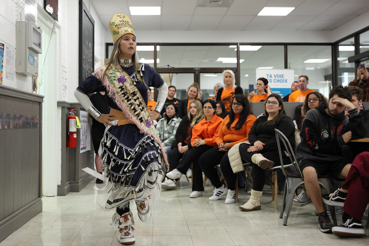 Dans le cadre de la Journée nationale de la vérité et de la réconciliation, le Centre de formation générale des adultes d’Alma a tenu plusieurs activités empreintes de sens et de respect. Les élèves et membres du personnel ont pris part à la plantation symbolique d’érables rouges, à la dégustation de bannique et au port du chandail orange. En outre, les élèves autochtones du PWD se sont joints à ceux du PFE pour partager un repas d’inspiration atikamekw. Enfin, tous ont eu le privilège d’assister à une prestation de danse traditionnelle et au témoignage inspirant de Jade Dubé, une jeune femme originaire de Manawan. Une journée marquée par l’ouverture, l’écoute et la solidarité!